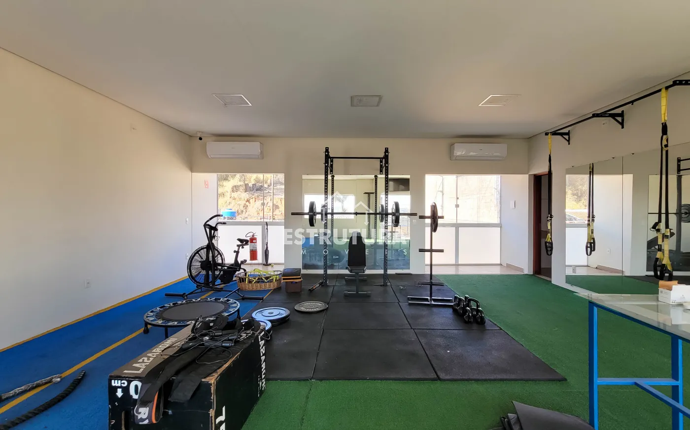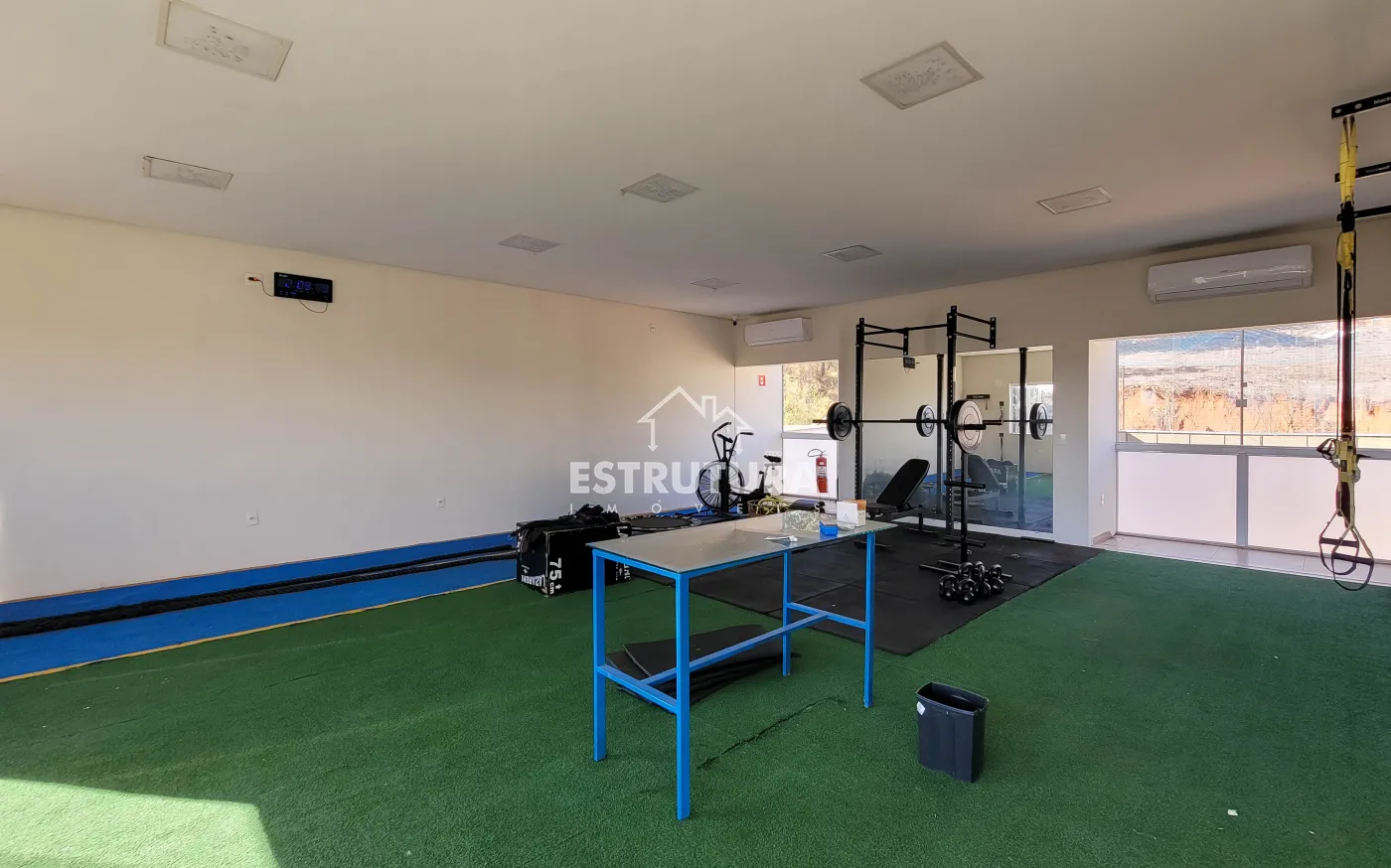No piso superior possui um espaço fitness ja equipado para academia e cross fit, 2 banheiros, sacada, ar condicionado.