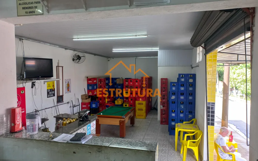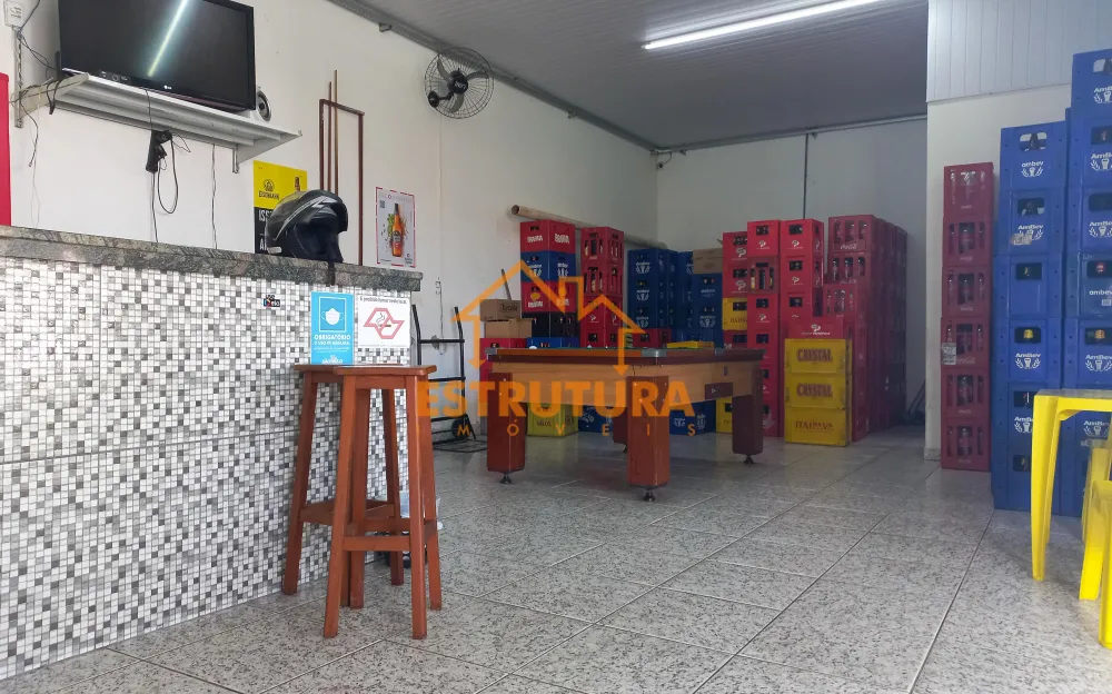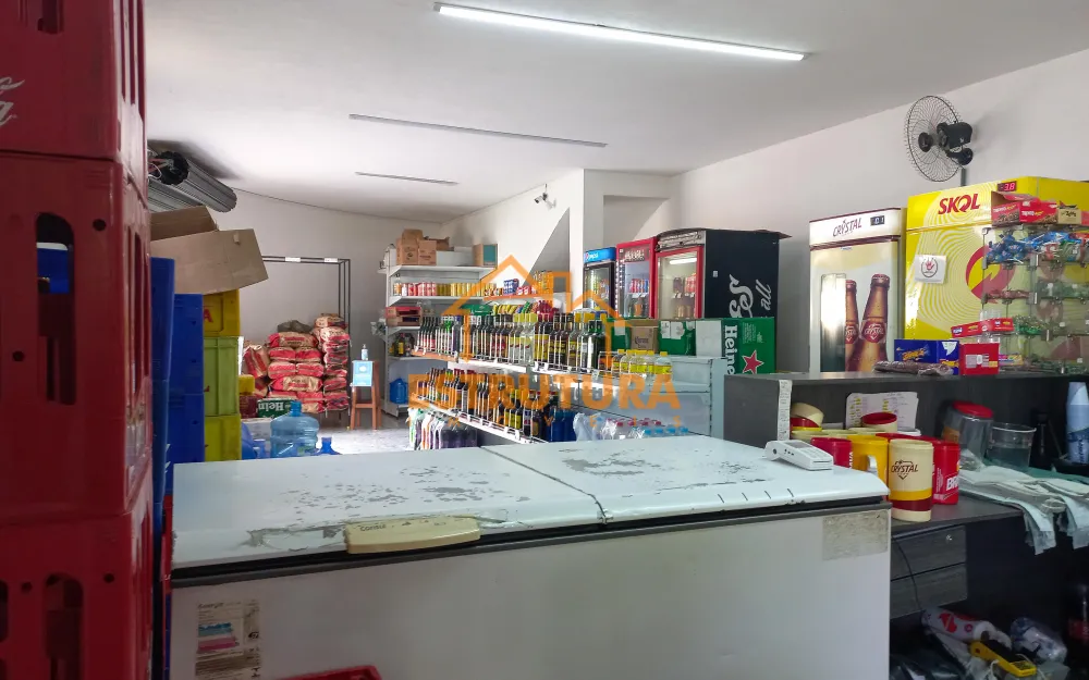 Este barracão comercial está atualmente em plena atividade econômica, com bar e mercearia no andar térreo, equipado com 5 freezers verticais, 1 horizontal, mesa de snoker, estoque de bebidas e produtos não perecíveis.