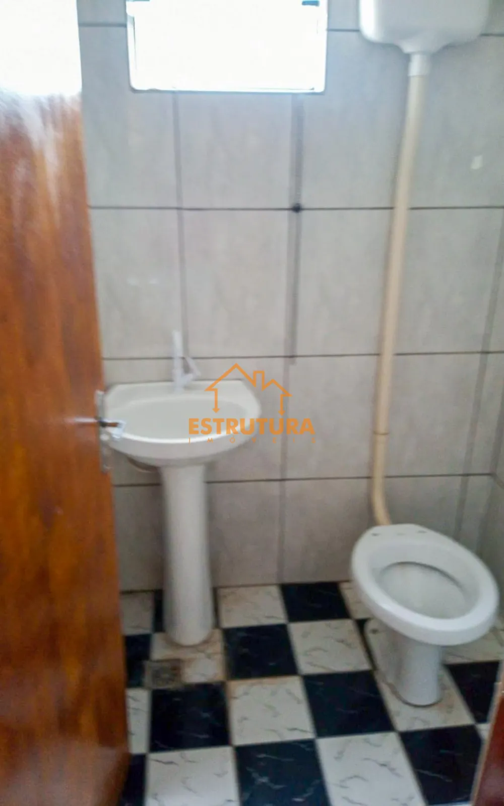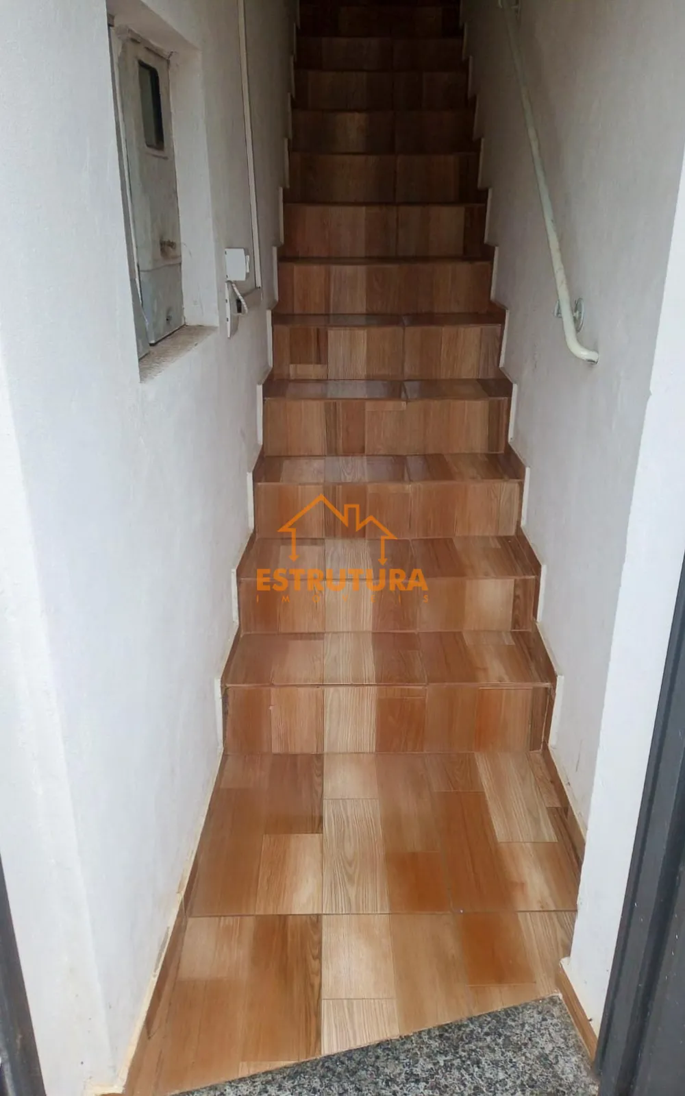 No andar superior, há um amplo salão de 70m² e 2 banheiros, que estão alugados.