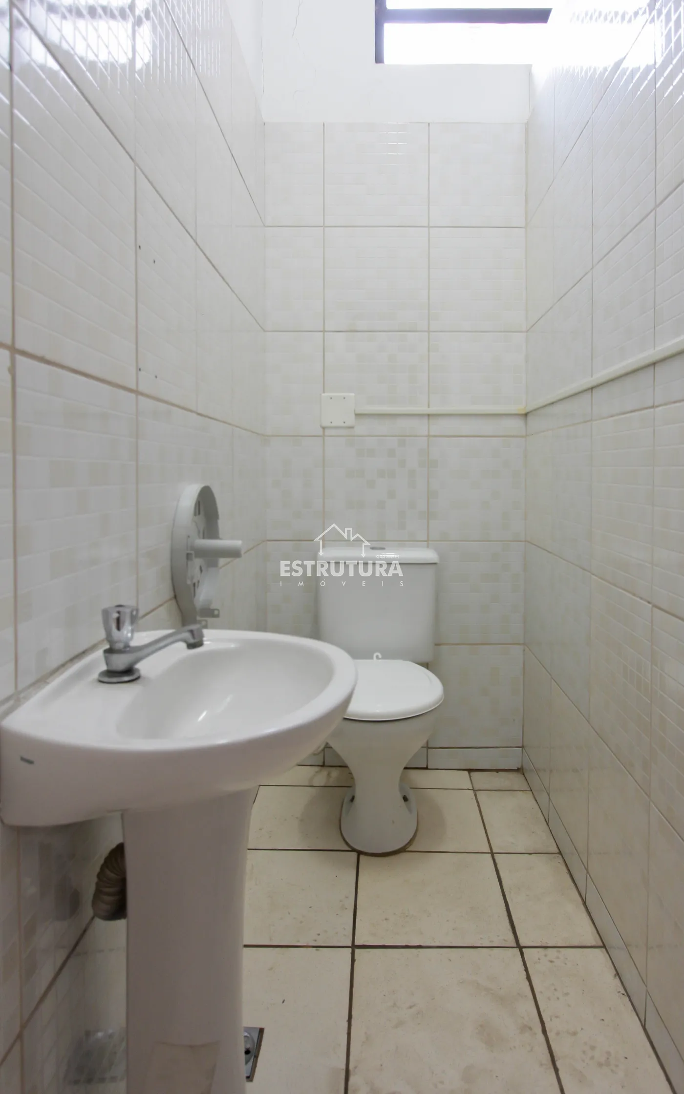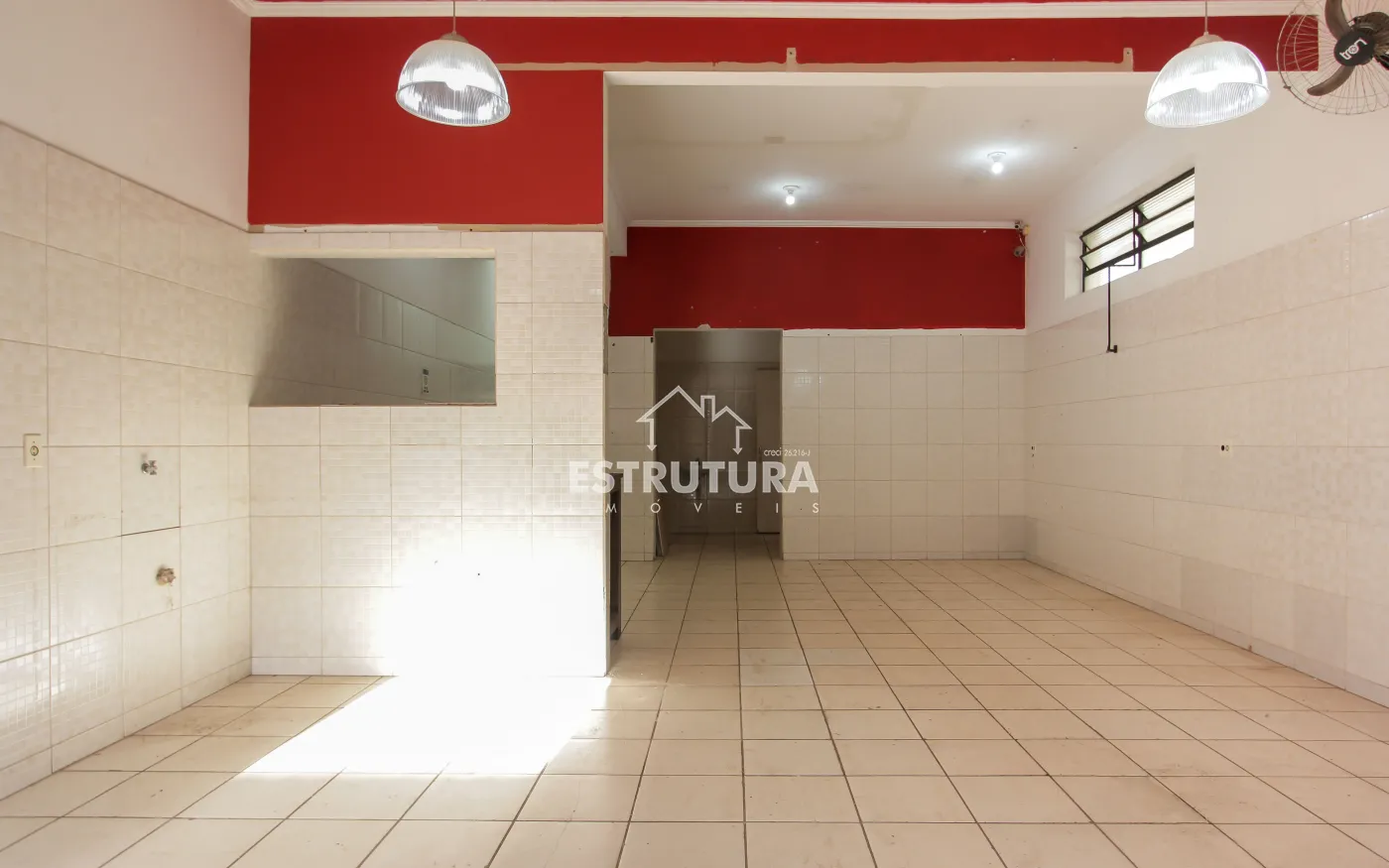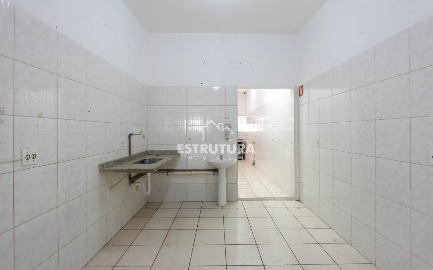 Salão comercial na frente, com 3 banheiros, sendo 1 para deficientes físicos e os outros masculino e feminino, 2 salas e cozinha.