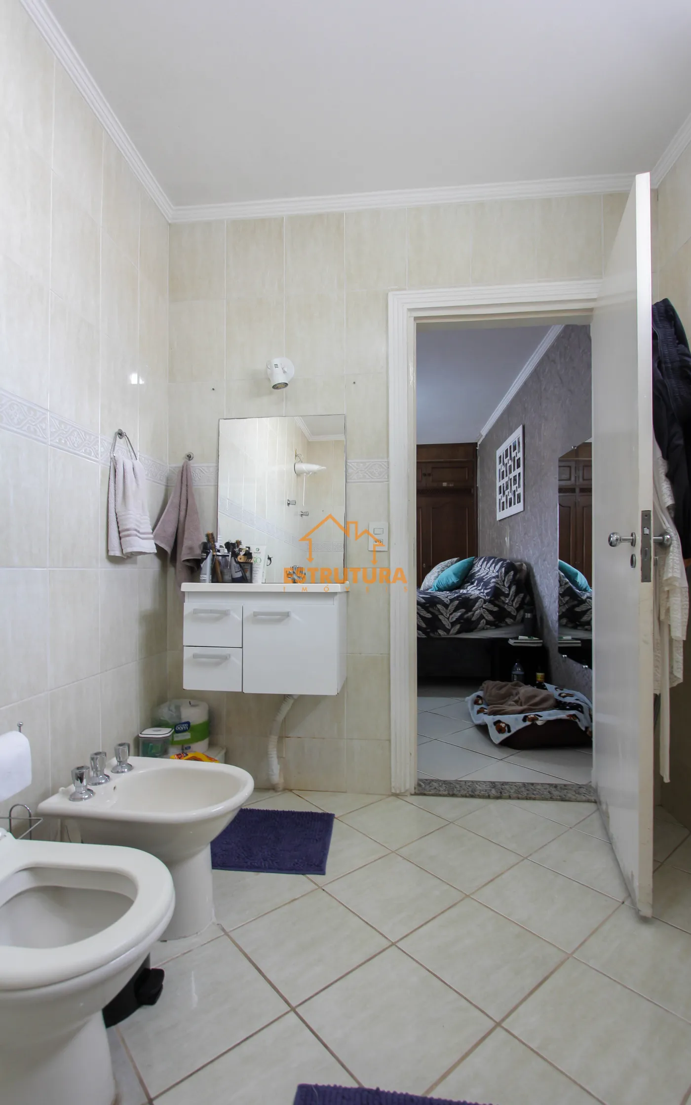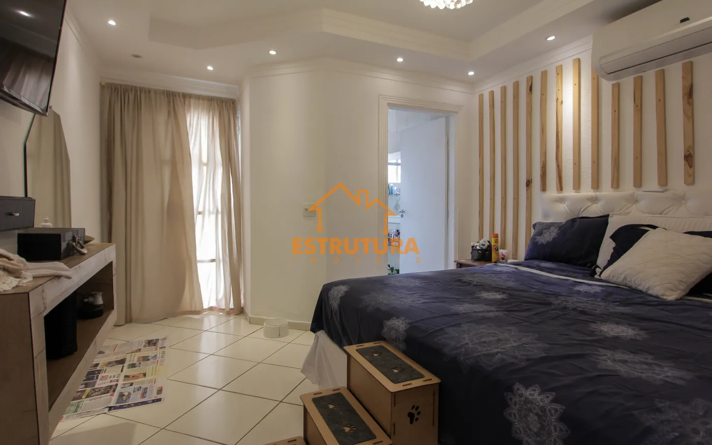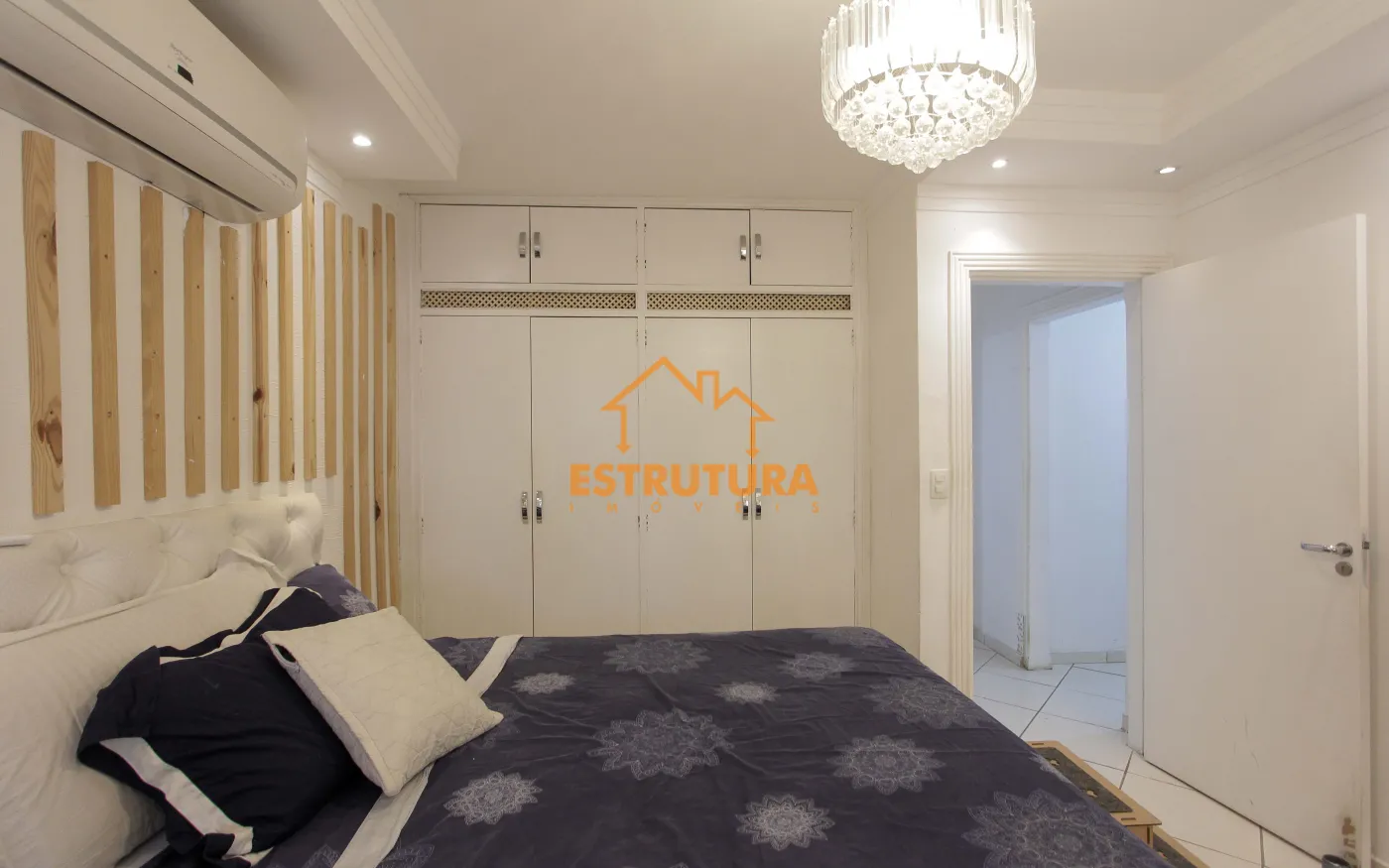Piso superior contendo 3 dormitorios sendo 3 suites com armarios, sala, area de luz, area de serviço.