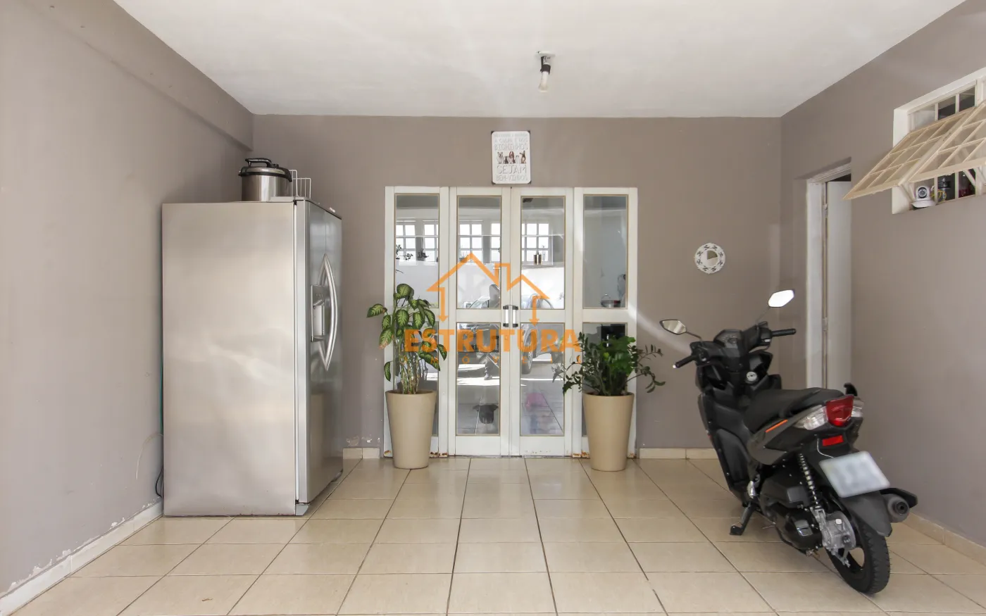 Piso inferior contendo 4 vagas de garagem, ampla sala, banheiro, cozinha, area de serviço.