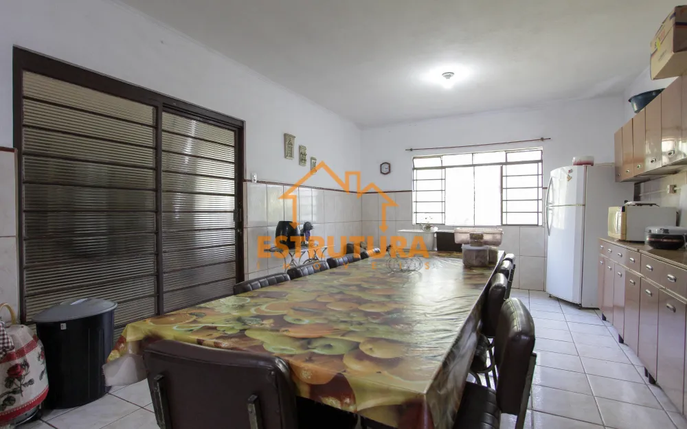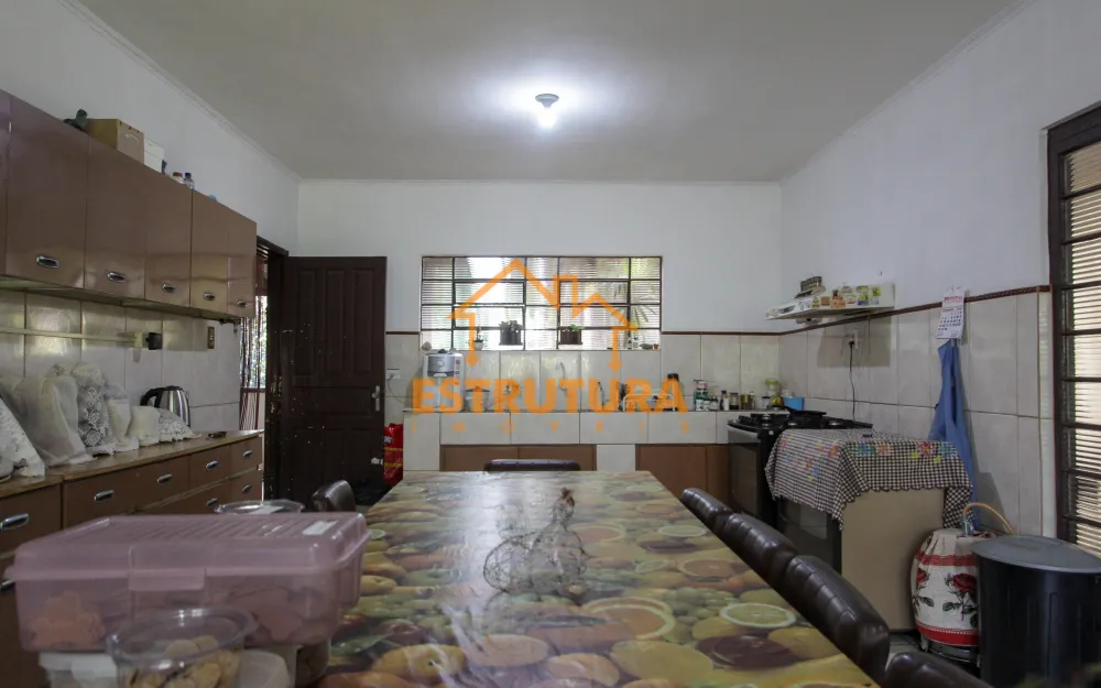 Chácara com 3.600 metros quadrados, contendo duas casas sendo uma de alvenaria com 3 quartos com armários sendo uma suíte, cozinha ampla, sala com vários ambientes e banheiro social, e outra sendo de madeira com 3 quartos, sala, cozinha, banheiro social, área de serviço e quintal.