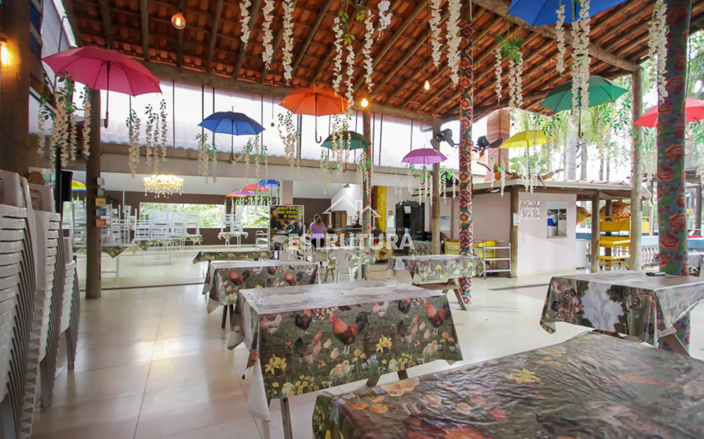 Salão de Festas: Espaço versátil com capacidade para até 200 pessoas, equipado com cozinha industrial e fogão a lenha. Perfeito para eventos, feiras e atividades corporativas.