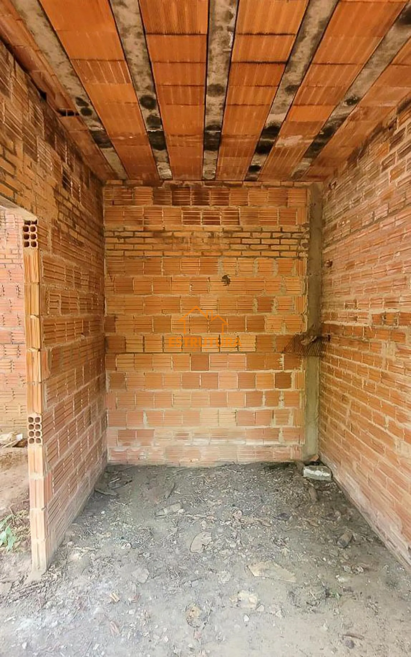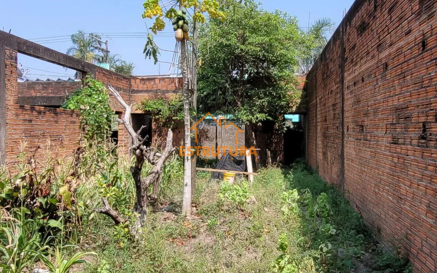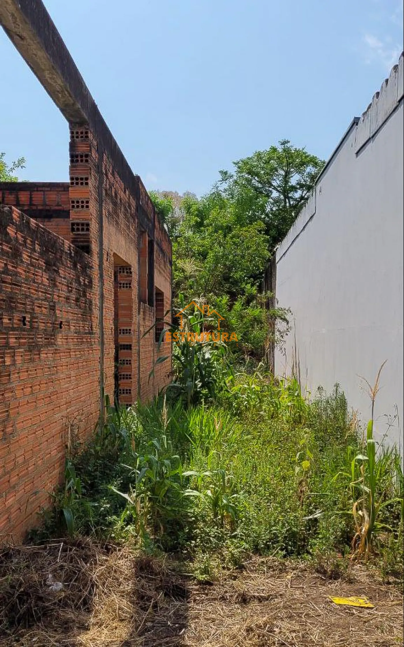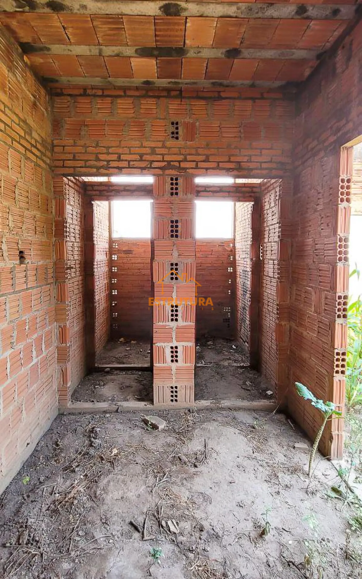 Imóvel à venda com construção parcialmente concluída, incluindo uma espaçosa garagem para vários veículos e um quintal nos fundos. O imóvel possui uma estrutura composta por uma sala, um dormitório, dois banheiros e um rancho.