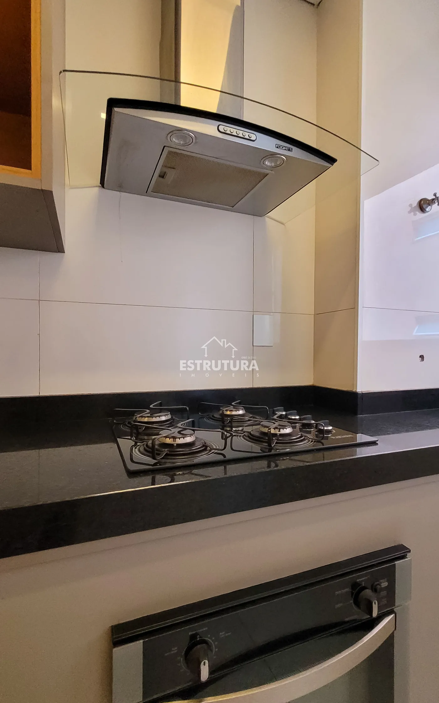 ? Cozinha planejada com coifa, cooktop e fogão