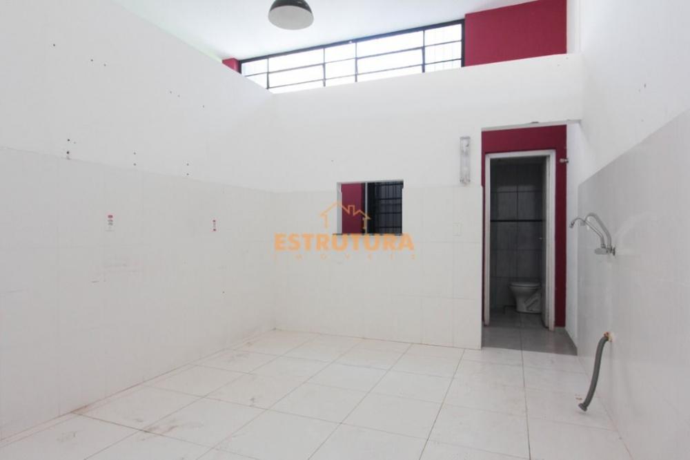 Salão comercial em ótima localização central, com 3 banheiros, cozinha, salão rico em luminárias e porta de aço.